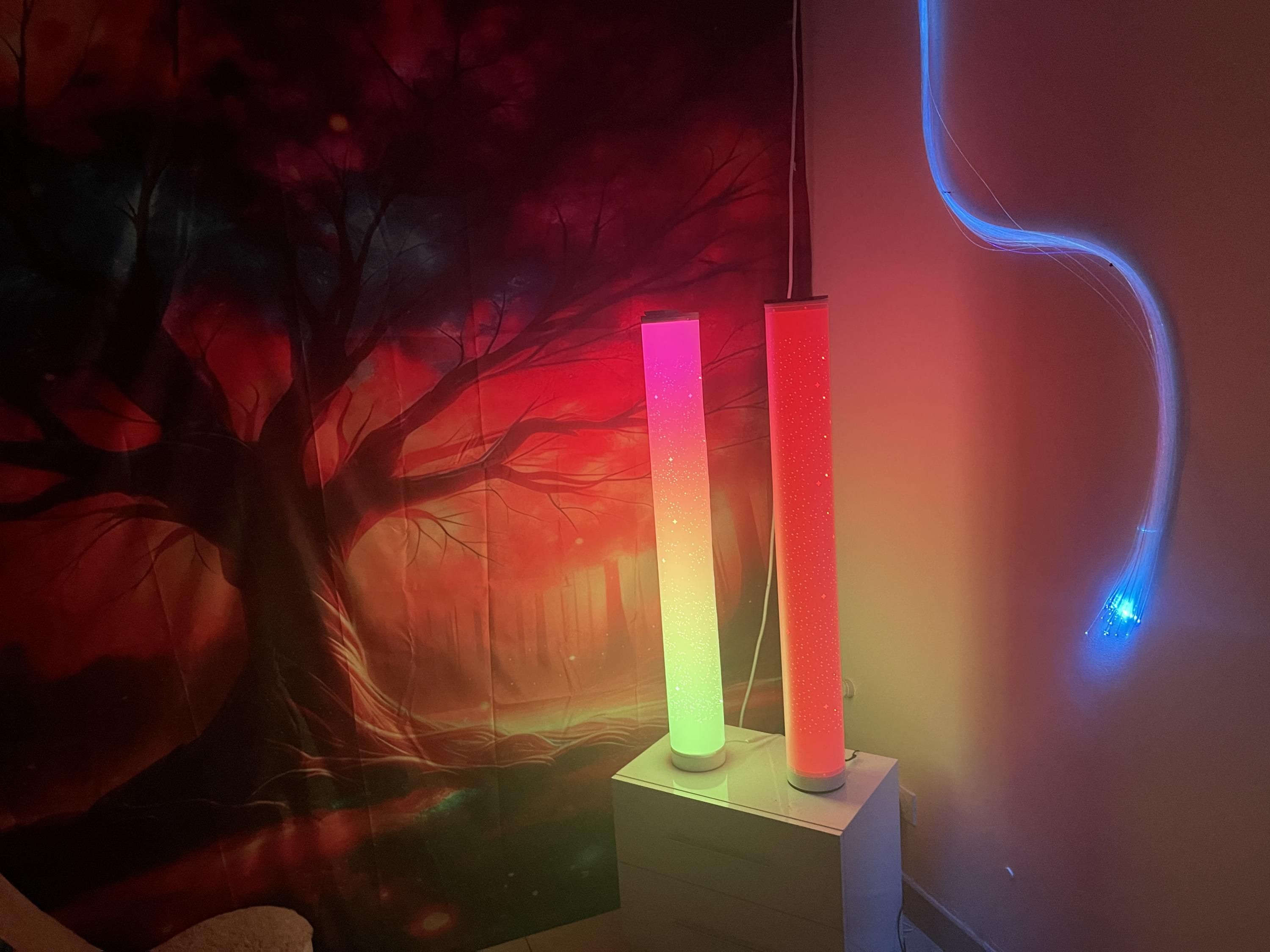 Des fibres optiques, que l'enfant peut toucher et manipuler, ajoutent une dimension tactile apaisante à l'expérience. Cet environnement enveloppant permet de réduire l'anxiété, de canaliser l'agitation et de créer un sentiment de sécurité propice au travail thérapeutique. En sollicitant la vue, le toucher et l'imaginaire de manière douce et contrôlée, la salle multi-sensorielle aide l'enfant à se recentrer, à accueillir ses émotions et à s'ouvrir plus facilement à l'échange.